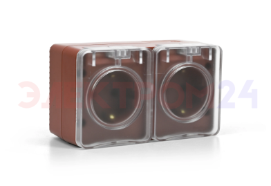 ATLASDESIGN PROFI IP54 О/У РОЗЕТКА двойная с заземлением со шторками, 16А, ТЕРРАКОТОВЫЙ