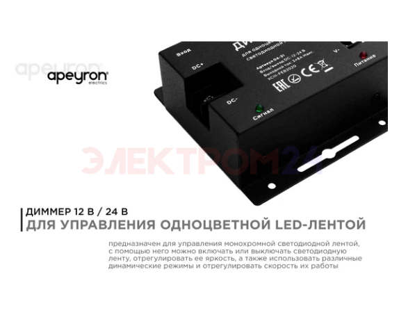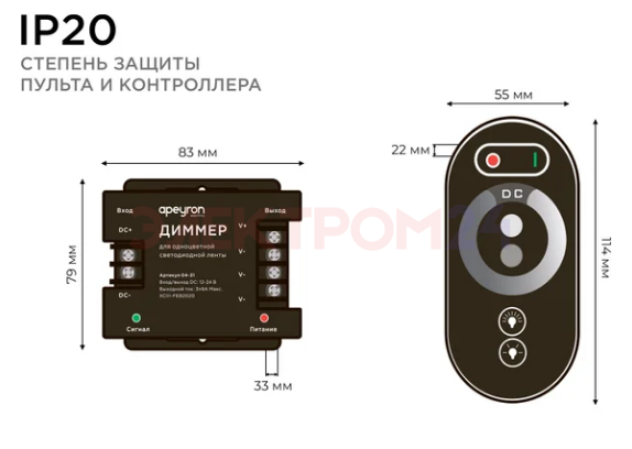 Отзывы к "Диммер 12/24В, 288/576 Вт, пульт сенсорный, для монохромной светодиодной ленты,размер 83*79*33":