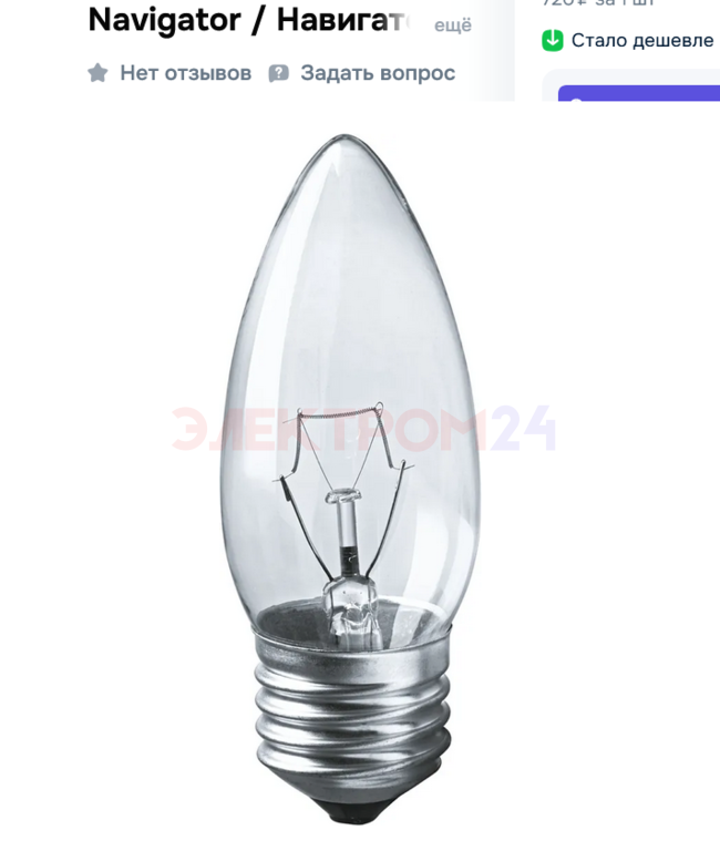 Отзывы к "Лампа ЛОН свеча прозрачная NI-B-60-230-E27-CL Navigator":