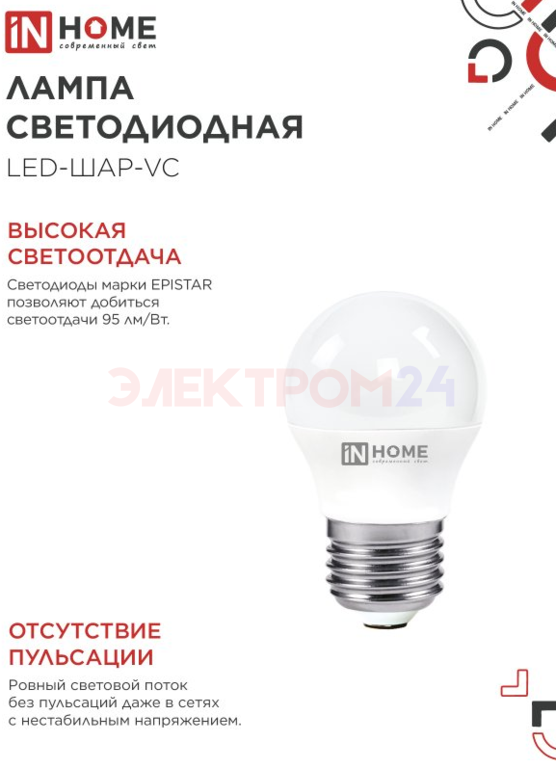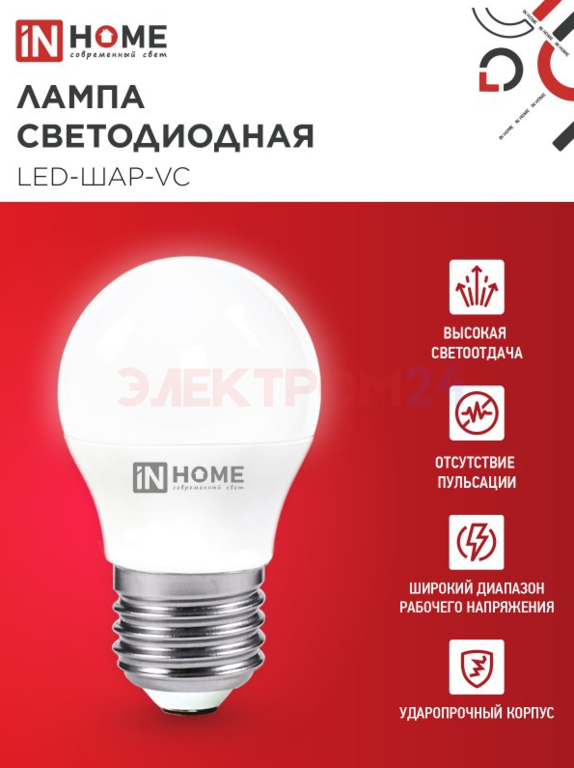 Отзывы к "Лампа светодиодная LED-ШАР-VC 4Вт 230В Е27 4000К 380Лм IN HOME":