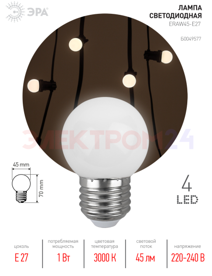 Отзывы к "Лампочка светодиодная ЭРА STD ERAW45-E27 E27 / Е27 1Вт шар белый для белт-лайт":