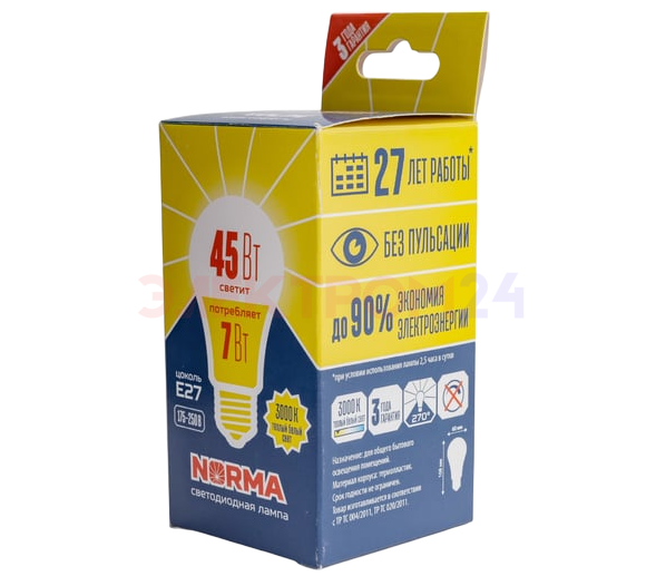 Отзывы к "LED-A60-7W-3000K-E27-FR-NR Лампа светодиодная.Форма A. матовая. Серия Norma. Теплый белый свет 3000К":