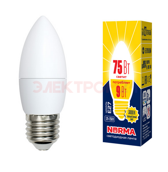 Отзывы к "LED-C37-9W-WW-E27-FR-NR Лампа светодиодная. Форма свеча. матовая. Серия Norma. 3000 К":