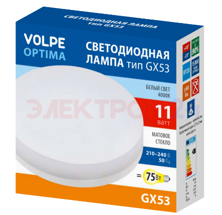 LED-GX53-11W-4000K-GX53-FR-SLS Лампа светодиодная. матовая. Белый свет 4000K. ТМ Volpe