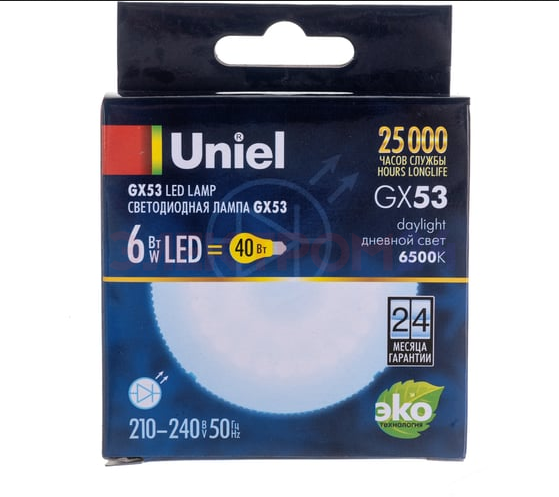 Отзывы к "LED-GX53-6W/6500K/GX53/FR PLZ01WH Лампа светодиодная, матовая. Дневной свет (6500K). ТМ Uniel":