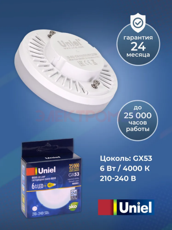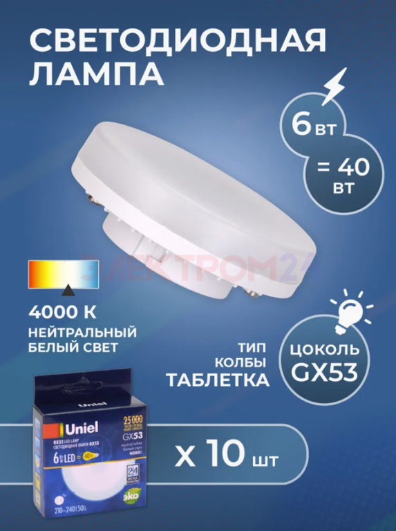 Отзывы к "LED-GX53-6W/NW/GX53/FR PLZ01WH Лампа светодиодная, матовая 4000К GX53 TM Uniel":