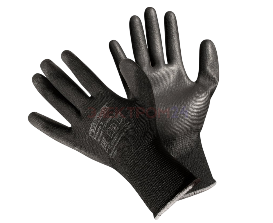 Перчатки для точных работ Fiberon полиэстер, полиуретановое покрытие № 9 черные