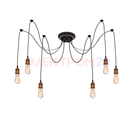 Подвесной светильник Паук Е27х6шт; Чёрное золото; 2м ноги (без оплетки)