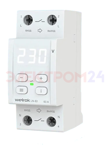 Реле напряжения с разрывом фазы и нуля Welrok LN-63