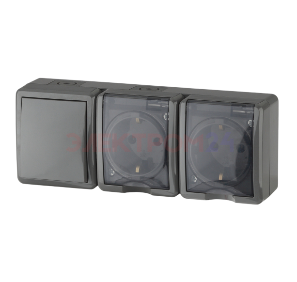 Розетка 2гн с заземлением с крышкой +выключатель о/у серый 16А IP54 Эксперт ЭРА