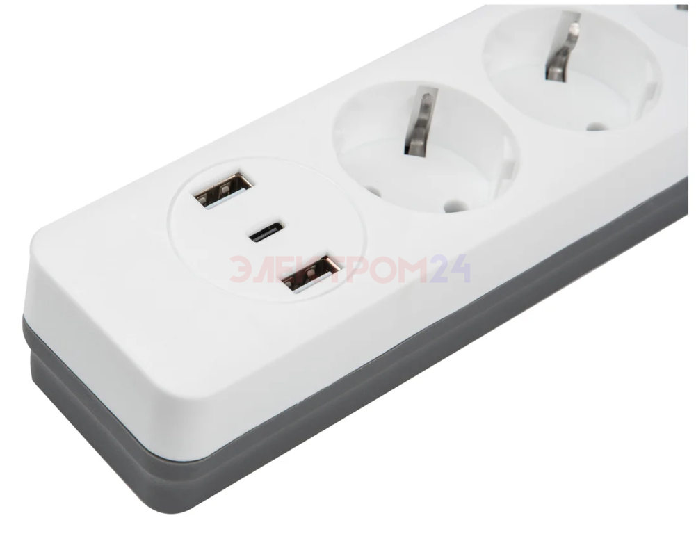 Сетевой фильтр Standard. шнур 3м Пвс 3х0.75. 5 гнезд. с-з. 2USB+1TYPE C. 10A. 2500Вт. Белый-серый