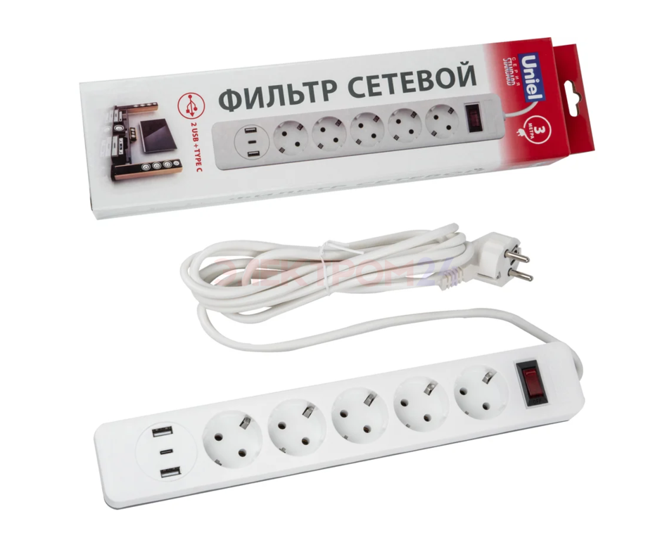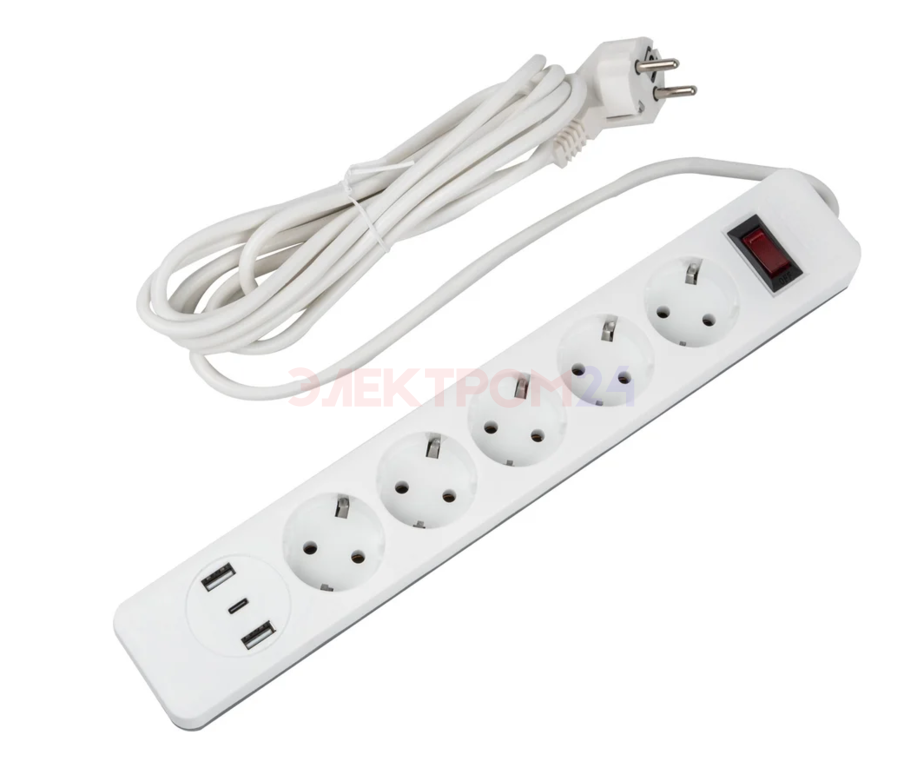Отзывы к "Сетевой фильтр Standard. шнур 3м Пвс 3х0.75. 5 гнезд. с-з. 2USB+1TYPE C. 10A. 2500Вт. Белый-серый":