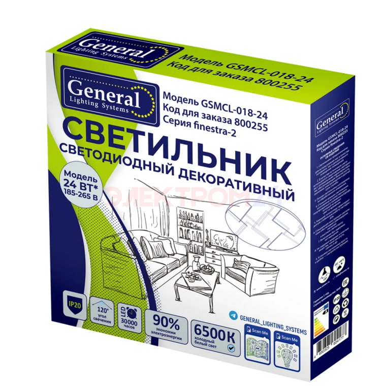 Отзывы к "Светильник светодиодный General Finestra-2 GSMCL-018-24 24Вт 6500К 1560Лм IP20":