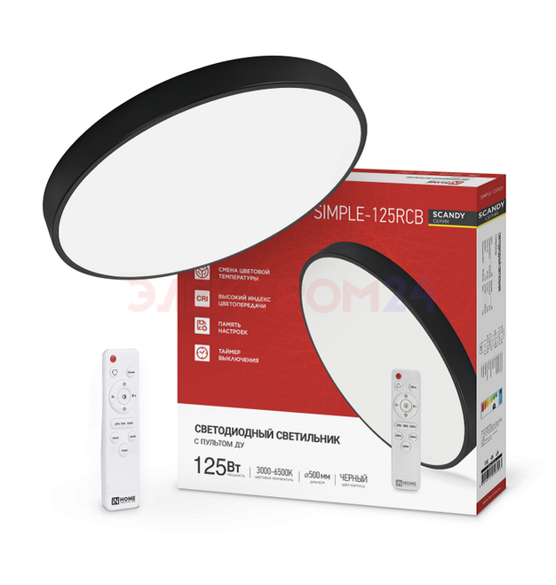 Отзывы к "Светильник светодиодный SCANDY SIMPLE-125RCB 125Вт 230В 3000-6500K 10000Лм 500x50мм с пультом ДУ чер":