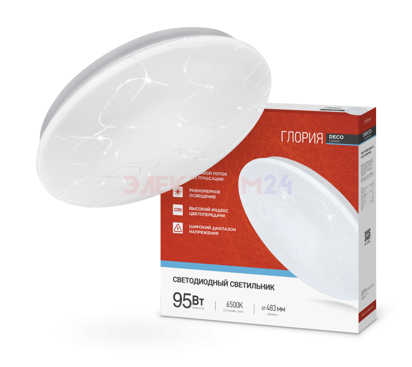 Светильник светодиодный серии DECO ГЛОРИЯ 95Вт 230В 6500К 10000Лм 483х67мм IN HOME