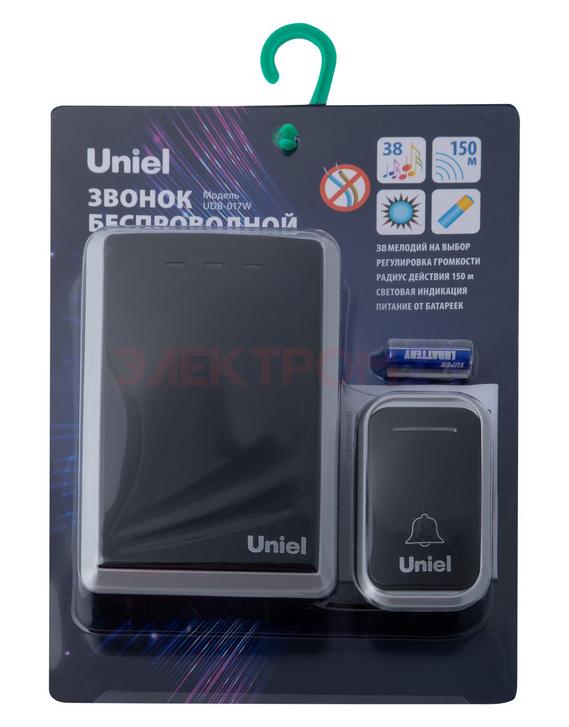 UDB-017W-R1T1-38S-150M-BL-SL Звонок беспроводной. Радиус действия 150м. Черный с серебристым. ТМ Uni