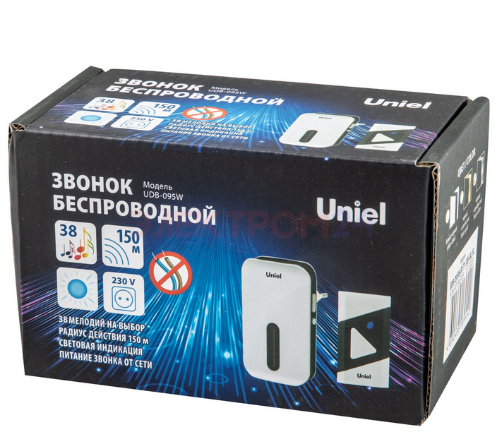 Видео-обзоры "UDB-095W-R1T1-38S-BL-WH Звонок электронный. 220В. Радиус действия 150 м. Черный с белым. ТМ Uniel", подобранные автоматически: