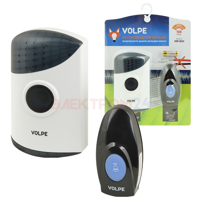 UDB-Q024 Звонок беспроводной. 16 мелодий. Свет. инд. Радиус действия 100 метров. Белый. ТМ Volpe