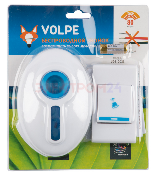 Отзывы к "UDB-Q033 W-R1T1-32S-100M-WH Звонок беспроводной. 36 мелодий. Световая индикация. Белый. ТМ Volpe":