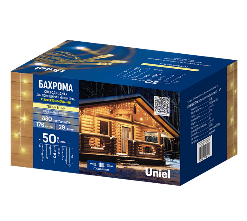 ULD-B50006-880-TTK WARM WHITE IP44 Бахрома с-ая с эффектом мерцания.50м.Соединяемая.Провод прозр.