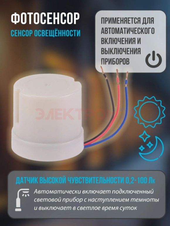 Встроенный фотоэлемент, который реагирует на изменение уровня освещённости.