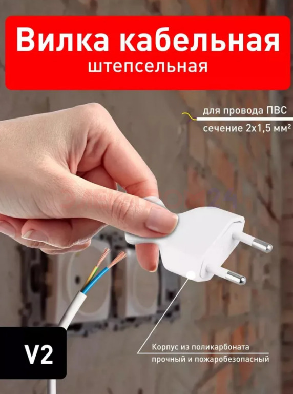 Особенностью вилки является прямой ввод, что позволяет подключать провода сечением до 2x1 мм2. Это обеспечивает удобство и безопасность при монтаже и эксплуатации.