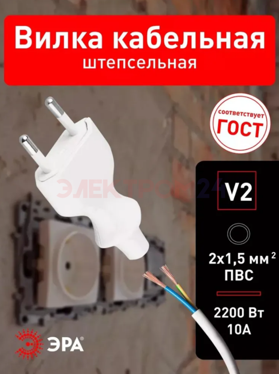 Отзывы к "Вилка ЭРА V2 без заземления 10A прямой ввод белая":