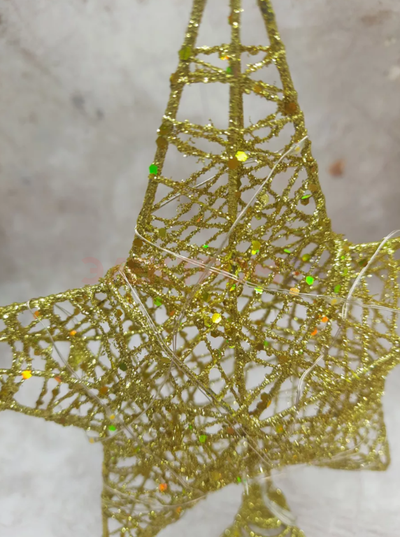 Звезда с гирляндой ЗОЛОТАЯ Теплый белый 20х15 см на батарейках АА