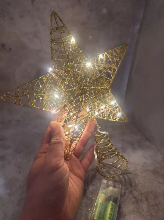 Отзывы к "Звезда с гирляндой ЗОЛОТАЯ Теплый белый 20х15 см на батарейках АА":